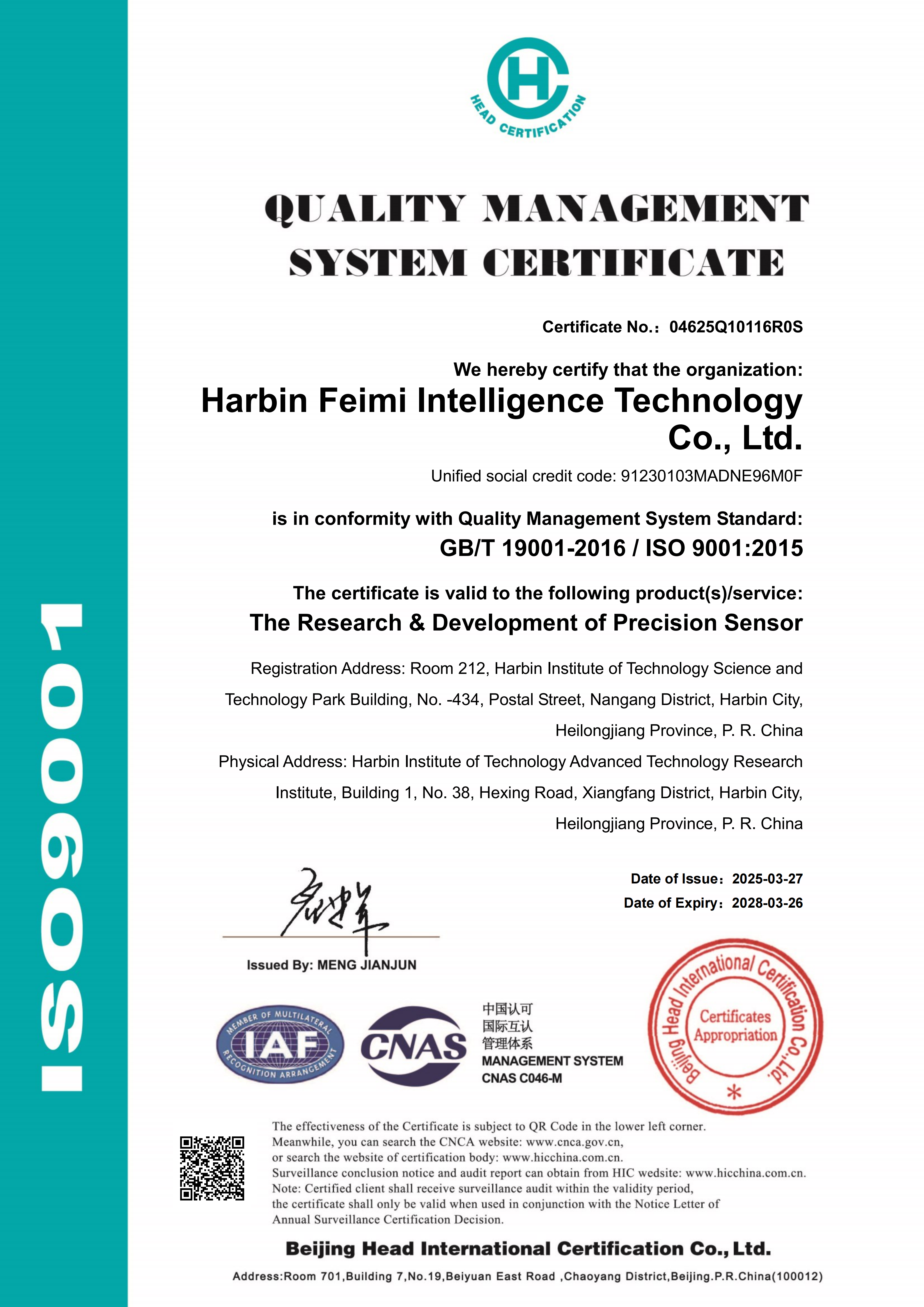 此次审核通过,是对公司过往质量管理工作的肯定,更是追求卓越的新起点。未来,飞米科技将深化质量管理体系建设,精进品质管控,坚守匠心、专注创新,为高端制造业提供优质产品与解决方案,助力产业升级,为冰城智能制造高质量发展贡献力量。